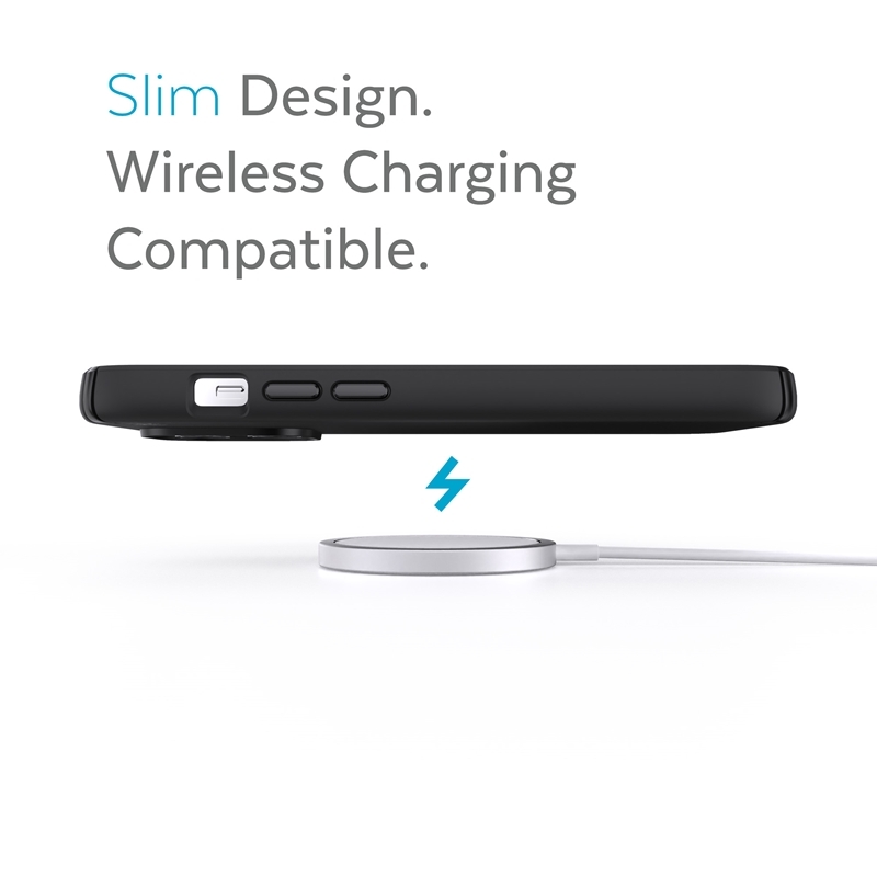 A tok MagSafe és Qi vezeték nélküli töltő kompatibilis, azaz nem kell a tokot levenni a telefonról a töltéshez.