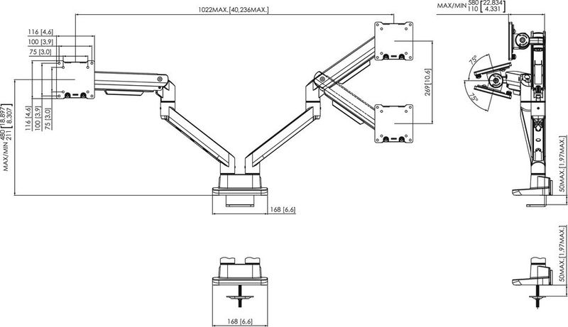 Mindegyik kar akár 20 kg-ot is elbír, és támogatja a 75 x 75 mm-es és a 100 x 100 mm-es VESA szerelési méreteket.